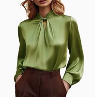 Женская элегантная блузка из атласа с длинным рукавом, шифоновая повседневная офисная одежда, модная блузка с рукавами-фонариками